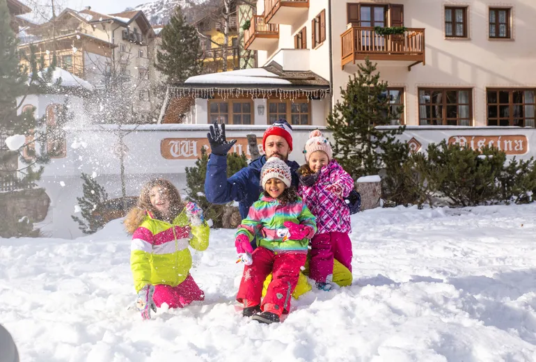 Scopri il nostro family hotel ad AndaloIl nostro hotel è sì nel centro di Andalo, ma è circondato da un grande parco privato: 6000 mq di natura alpina, un’oasi esclusiva solo per i nostri clienti. Qui i più piccoli possono giocare in totale sicurezza nel parco giochi, mentre voi vi rilassate sulle sedie sdraio o giocate a tennis nel nostro campo privato.