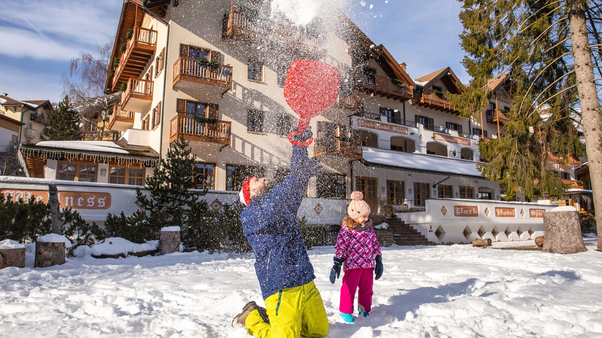Unser Familienhotel in Andalo entdeckenUnser Hotel liegt zwar mitten in Andalo, aber es ist von einem großen privaten Park umgeben: 6.000 m² alpine Natur, eine exklusive Oase nur für unsere Gäste. Hier können auch die Kleinsten in absoluter Geborgenheit spielen, während sich die Eltern auf den Liegestühlen ausruhen oder eine Partie Tennis auf unserem hoteleigenen Tennisplatz spielen.