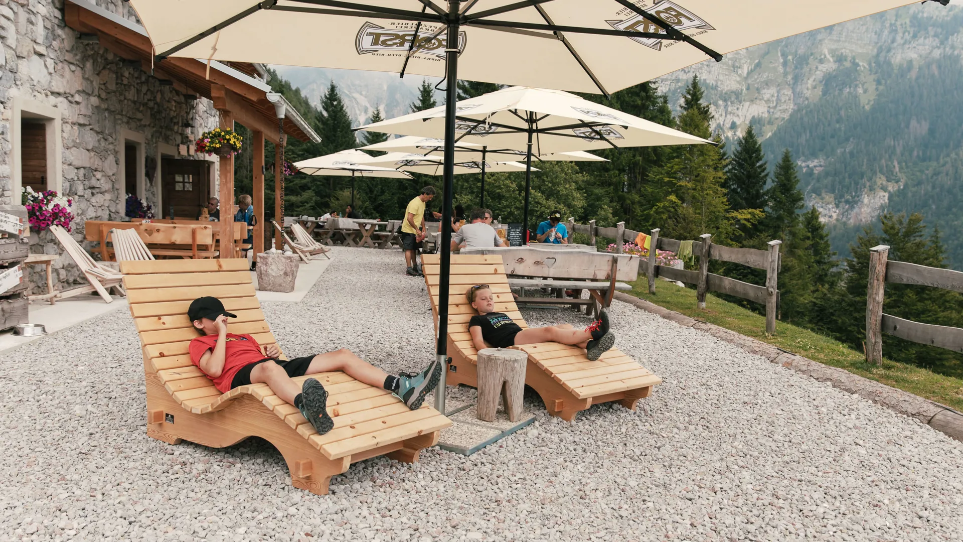 An der Talstation gehen sie nach links bzw. Nordwesten und nehmen den ebenen Waldweg 340, der Sie schließlich zu den sich erhebenden Felswänden des Croz Altissimo führt. Der Weg ist vor dem Valle delle Seghe in den Felsen geschlagen, doch dank des aus einem Stahlseil bestehenden Geländers können Sie ihn in Sicherheit benutzen. Nach einer Unterführung und nach einem weiteren Felsenabschnitt steigt der Weg weiter an und erreicht schließlich eine Höhe von 1.430 m. Laufen Sie weiter durch den Wald und in wenigen Minuten erreichen Sie die Schutzhütte Croz dell'Altissimo (1,5 Std. ab Pradel), die vor den hohen Felswänden des gleichnamigen Gipfels steht.