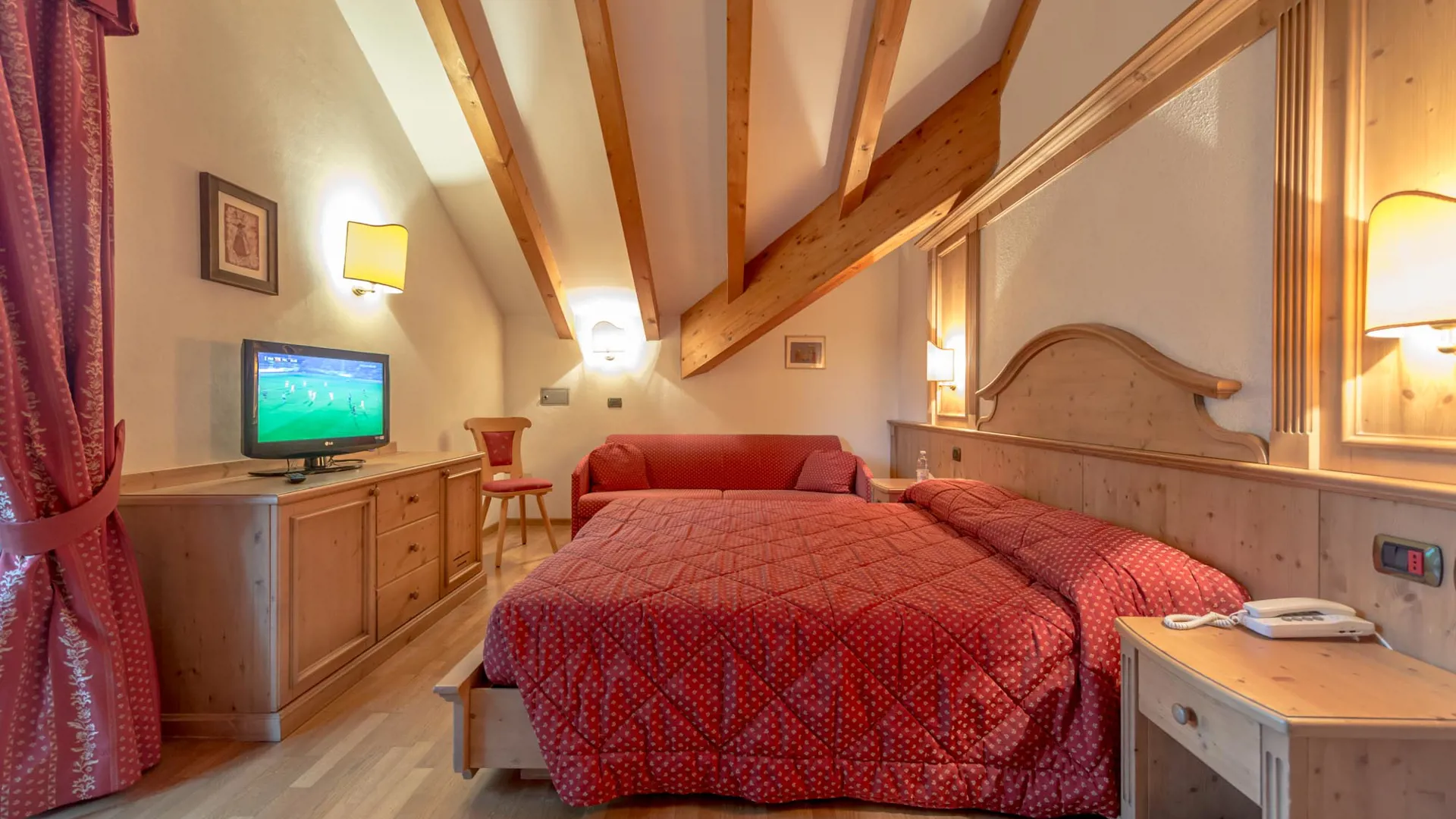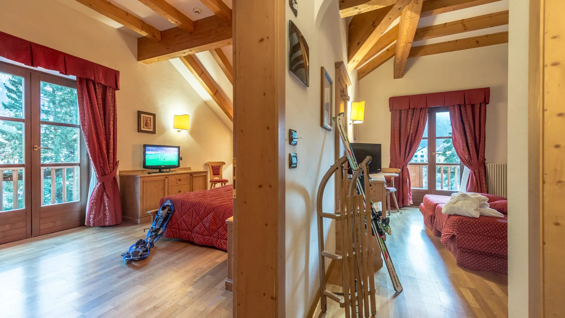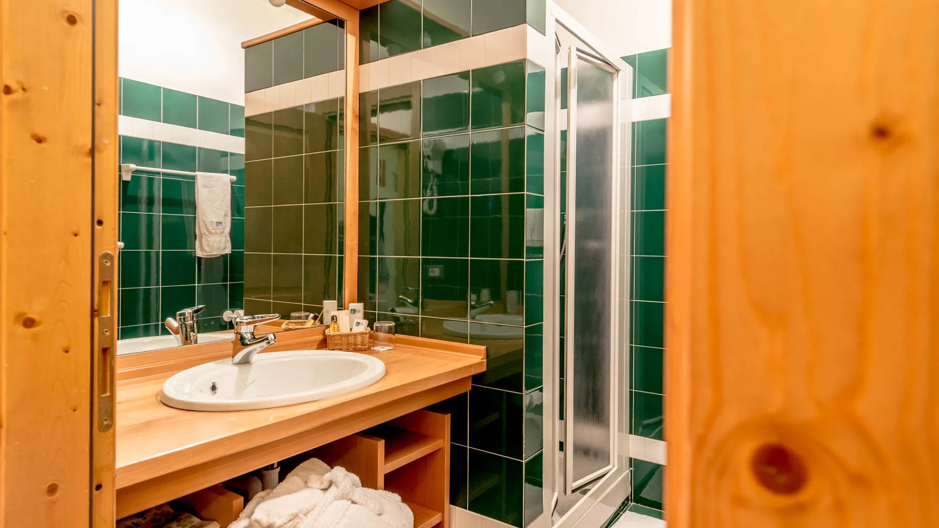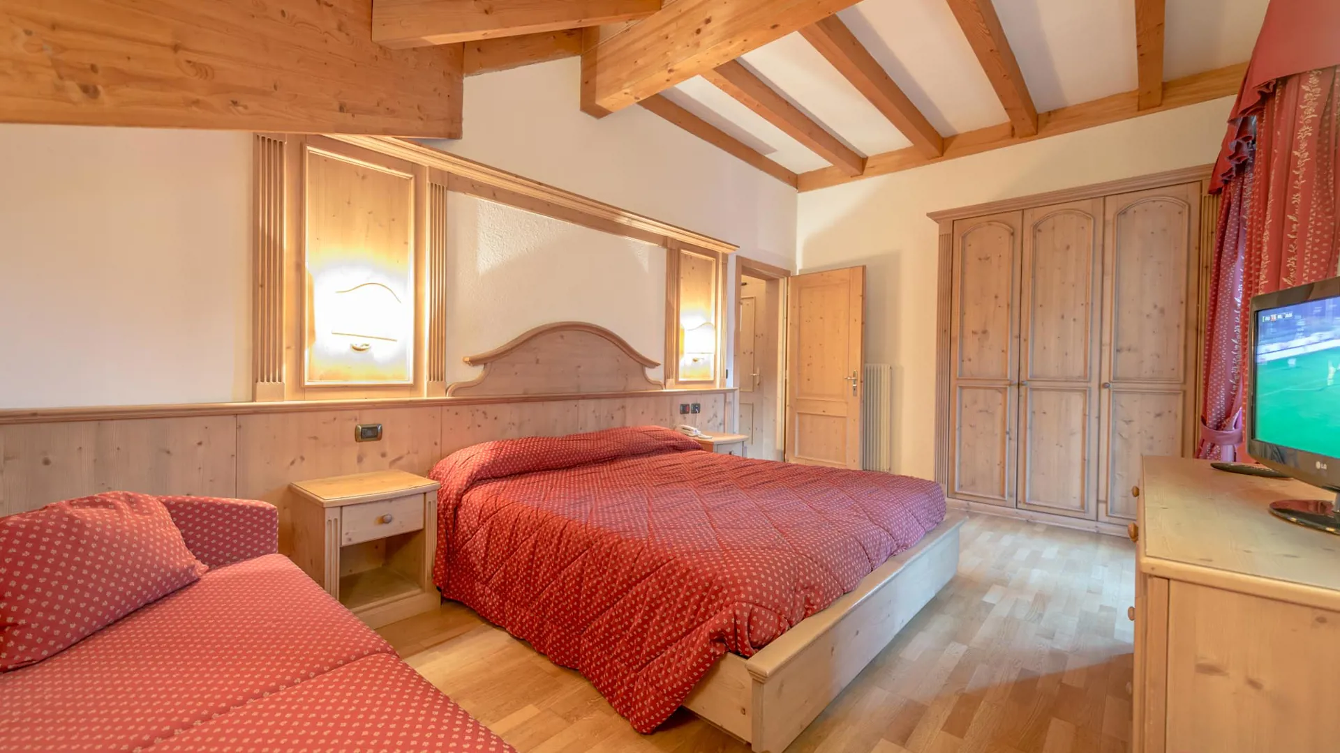 Es besteht aus einem Vorraum, einem Schlafzimmer und einem Kinderzimmer für 2 oder 3 Kinder. Umfasst 2 Balkone mit Blick auf die Brenta-Dolomiten. Außerdem 2 TV und Badezimmer mit Dusche.
