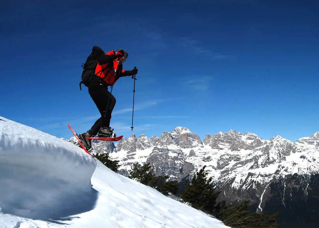 Snowshoe walks in Andalo offer a magical experience, crossing the snowy landscapes of the Brenta Dolomites; we also organise periodical guided snowshoe excursions. There are plenty of trails, with both challenging options and alternatives suitable for the whole family. Ask for information in the hotel, and we will explain the various options.