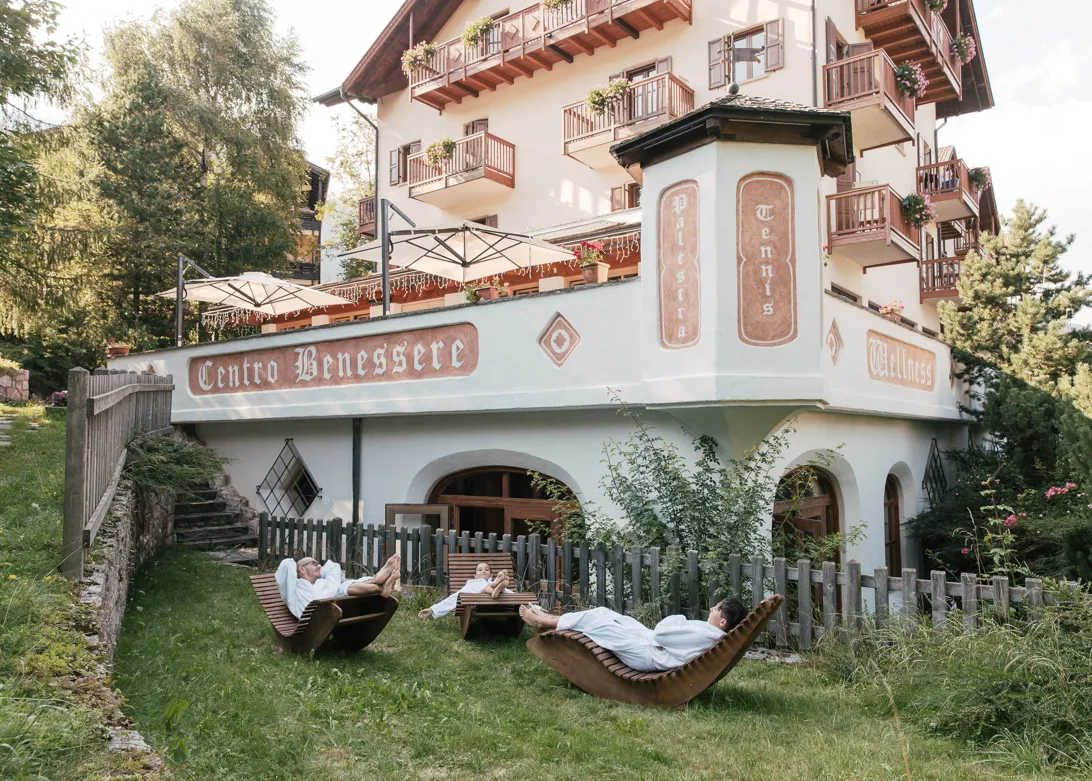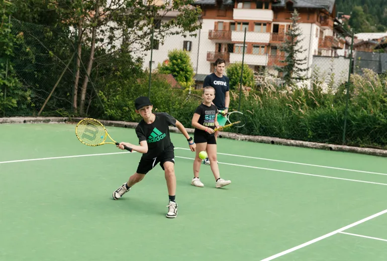 Unser Familienhotel in Andalo entdeckenUnser Hotel liegt zwar mitten in Andalo, aber es ist von einem großen privaten Park umgeben: 6.000 m² alpine Natur, eine exklusive Oase nur für unsere Gäste. Hier können auch die Kleinsten in absoluter Geborgenheit spielen, während sich die Eltern auf den Liegestühlen ausruhen oder eine Partie Tennis auf unserem hoteleigenen Tennisplatz spielen.