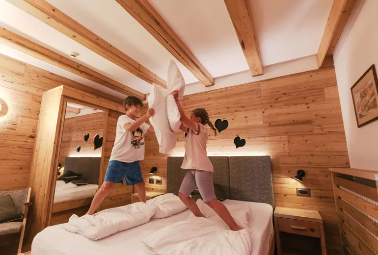 Ein Hotel in Andalo für Familien, die sich bei uns so wohlfühlen wie zu Hause. Beim Mittag- und Abendessen können die Kinder bequem in Hochstühlen sitzen. Außerdem liegen Malsachen für sie bereit. Es gibt auch eine Ecke für die Zubereitung von Babynahrung für die Kleinsten! Das Zimmer selbst ist mit Kinderbett, Wickeltisch, Flaschenwärmer und einem Nachtlicht ausgestattet.