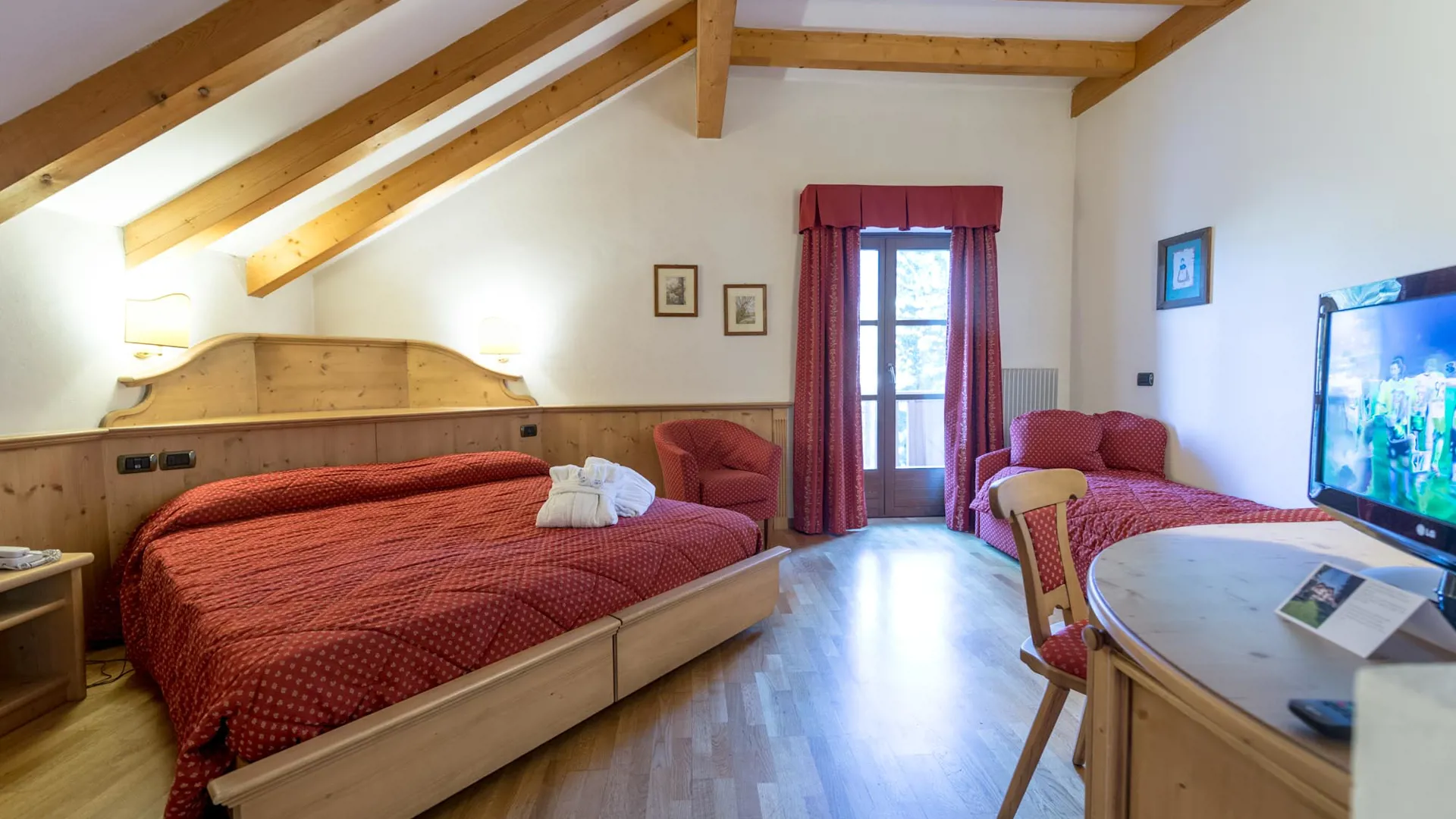Al Park Hotel Sport potete scegliere tra 6 tipologie di camere: tutte con parquet in legno, TV, cassaforte, frigobar, telefono, phon, balcone, accappatoi per il centro benessere e servizio di pulizia al mattino e ripasso serale.